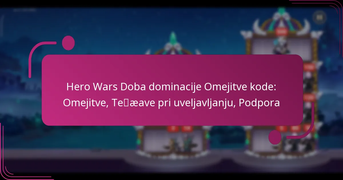 Hero Wars Doba dominacije Omejitve kode: Omejitve, Težave pri uveljavljanju, Podpora