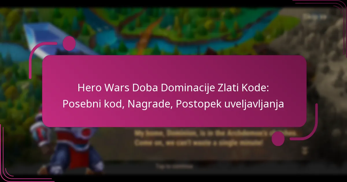 Hero Wars Doba Dominacije Zlati Kode: Posebni kod, Nagrade, Postopek uveljavljanja