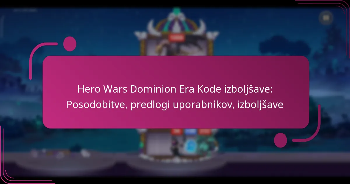 Hero Wars Dominion Era Kode izboljšave: Posodobitve, predlogi uporabnikov, izboljšave
